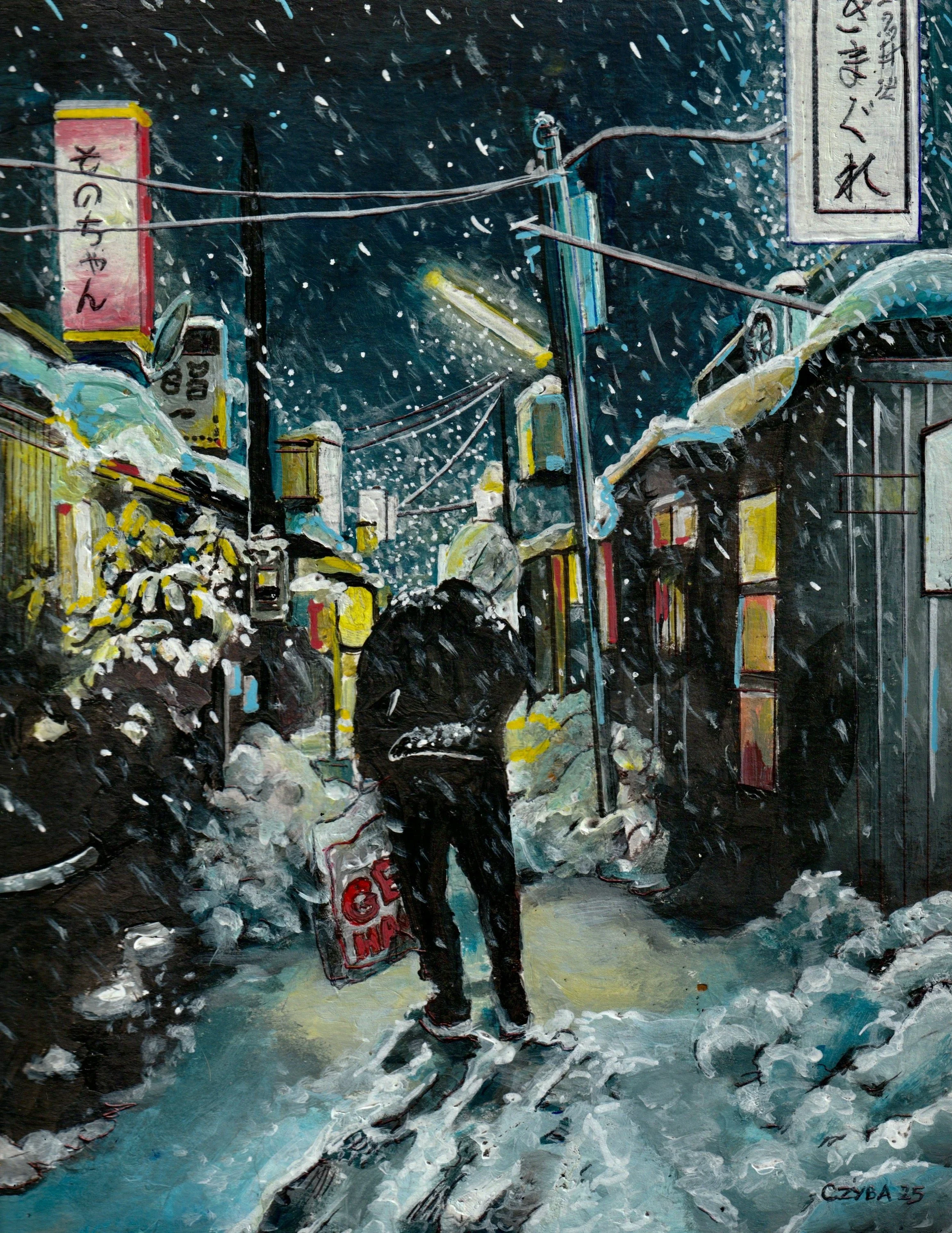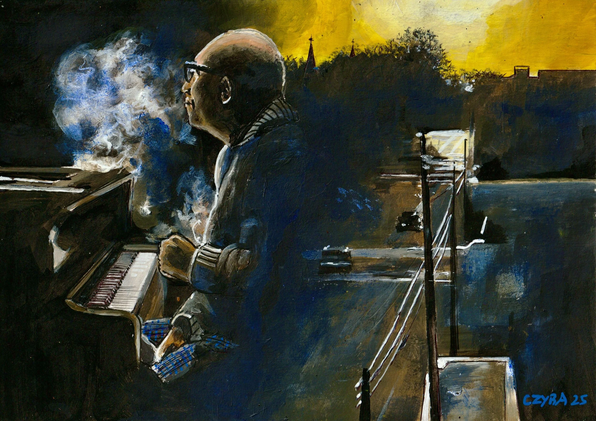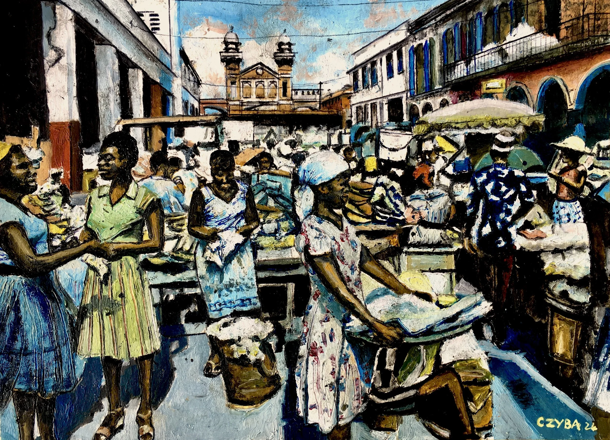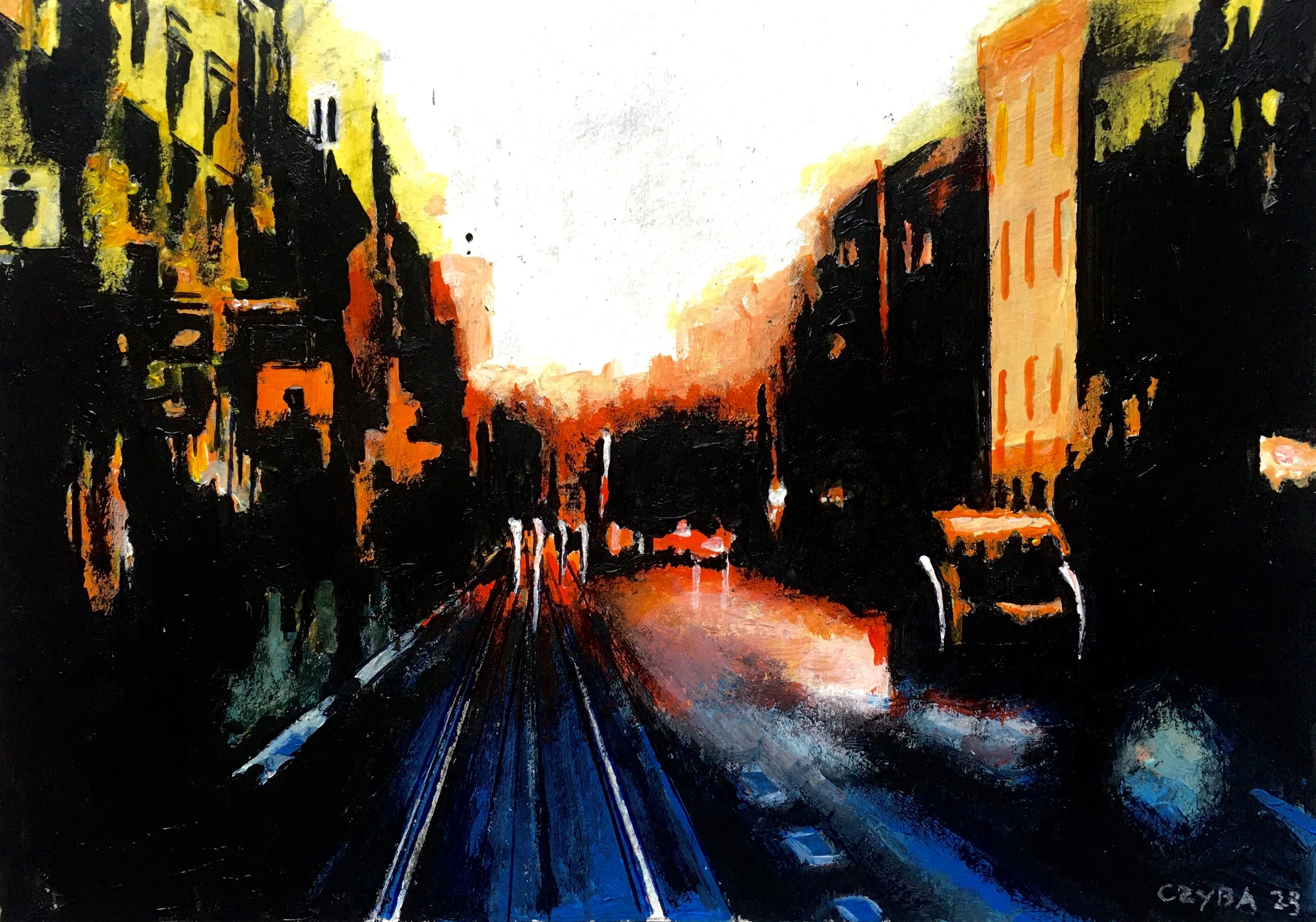 "MÉMOIRE DES VILLES". Diaporama de 33 oeuvres de CZYBA 2024/2025, huiles et acryliques sur papier. Musique de Miles Davis.