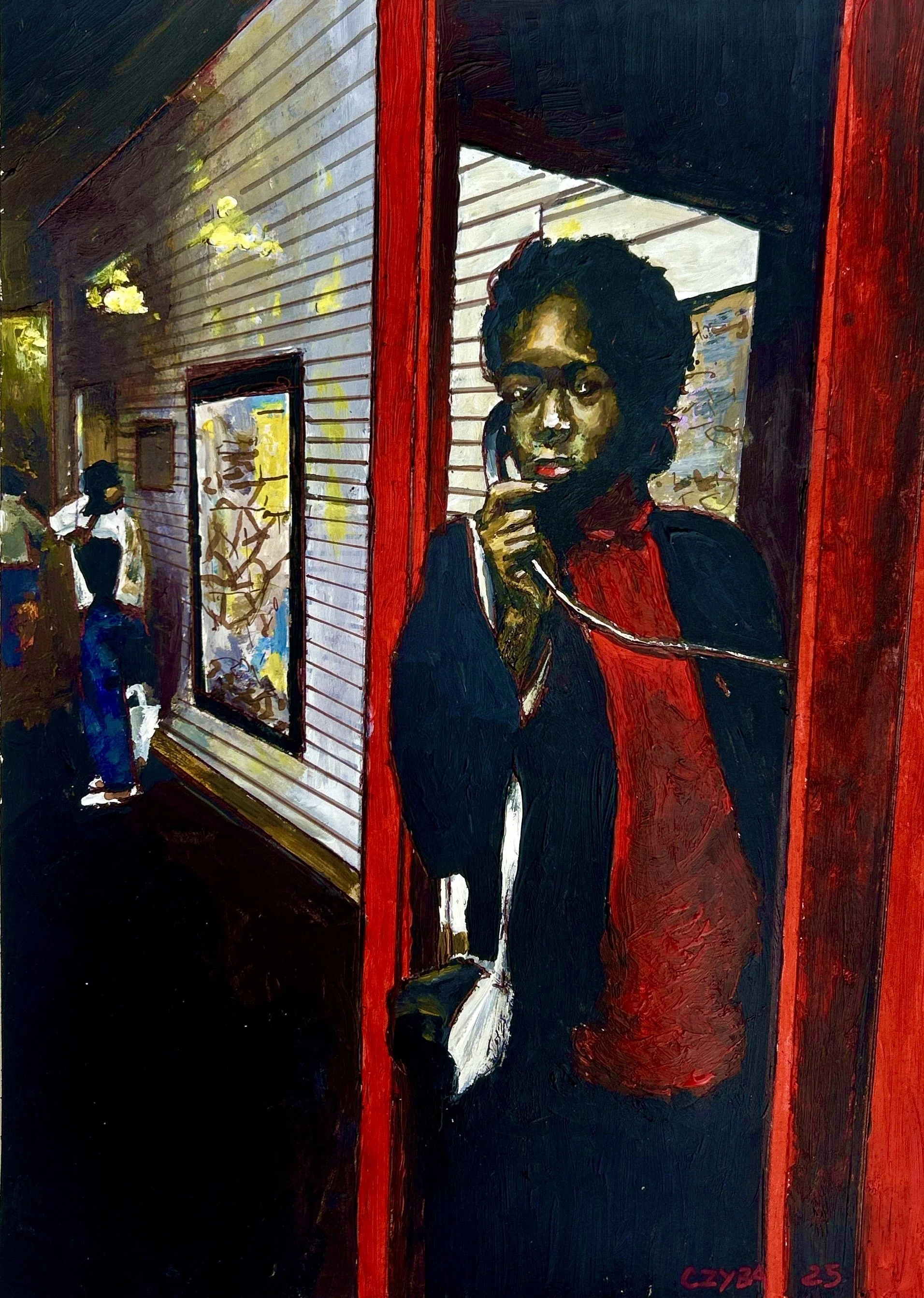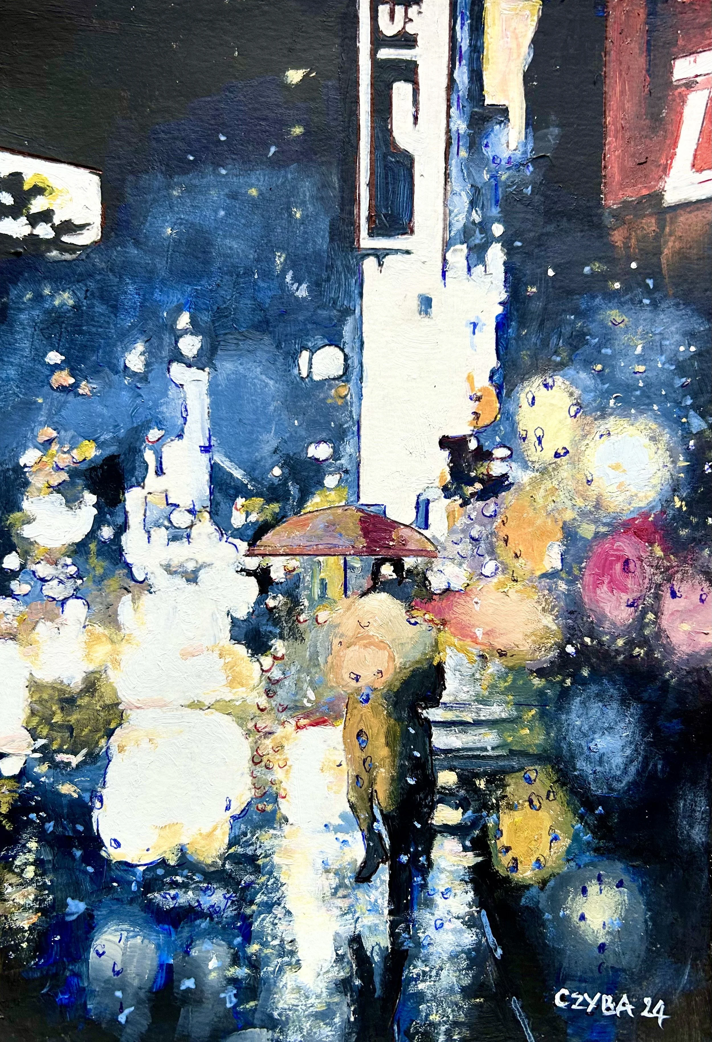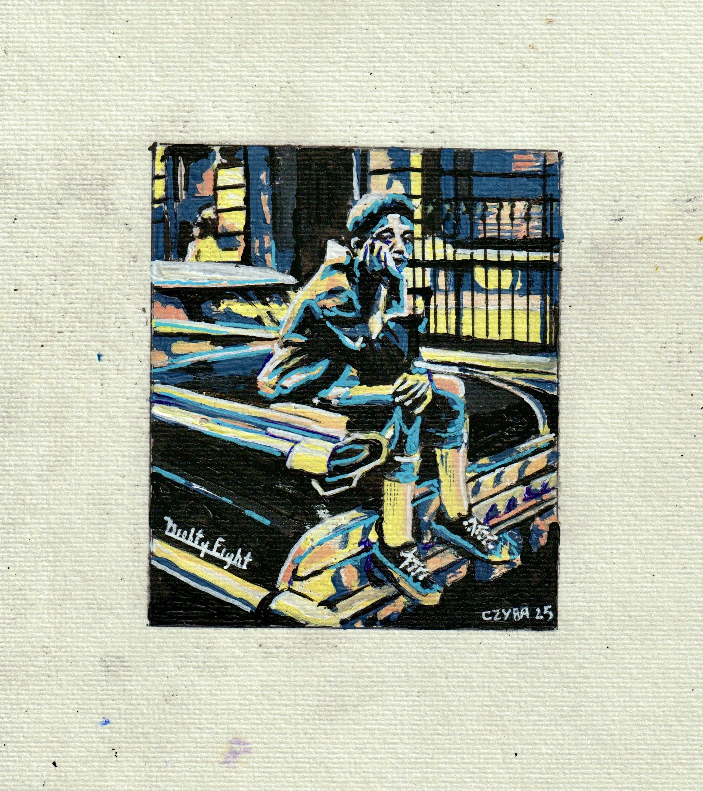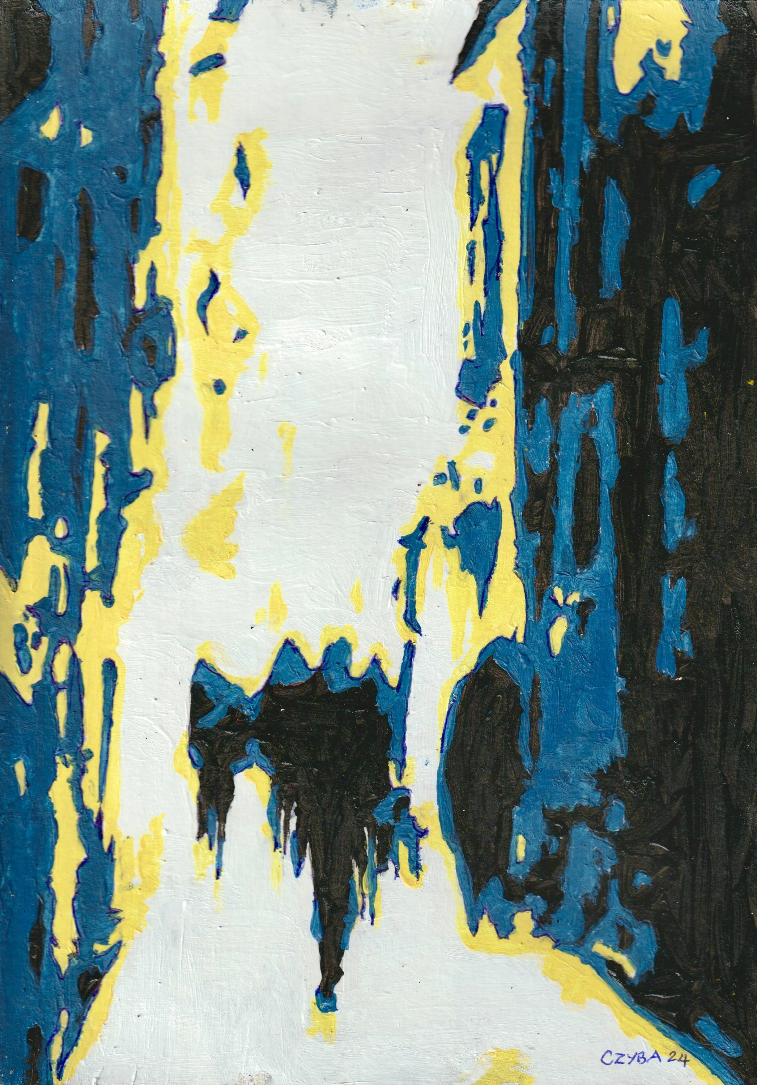 Huile sur papier, miniature 21x29 cm. CZYBA 2024.