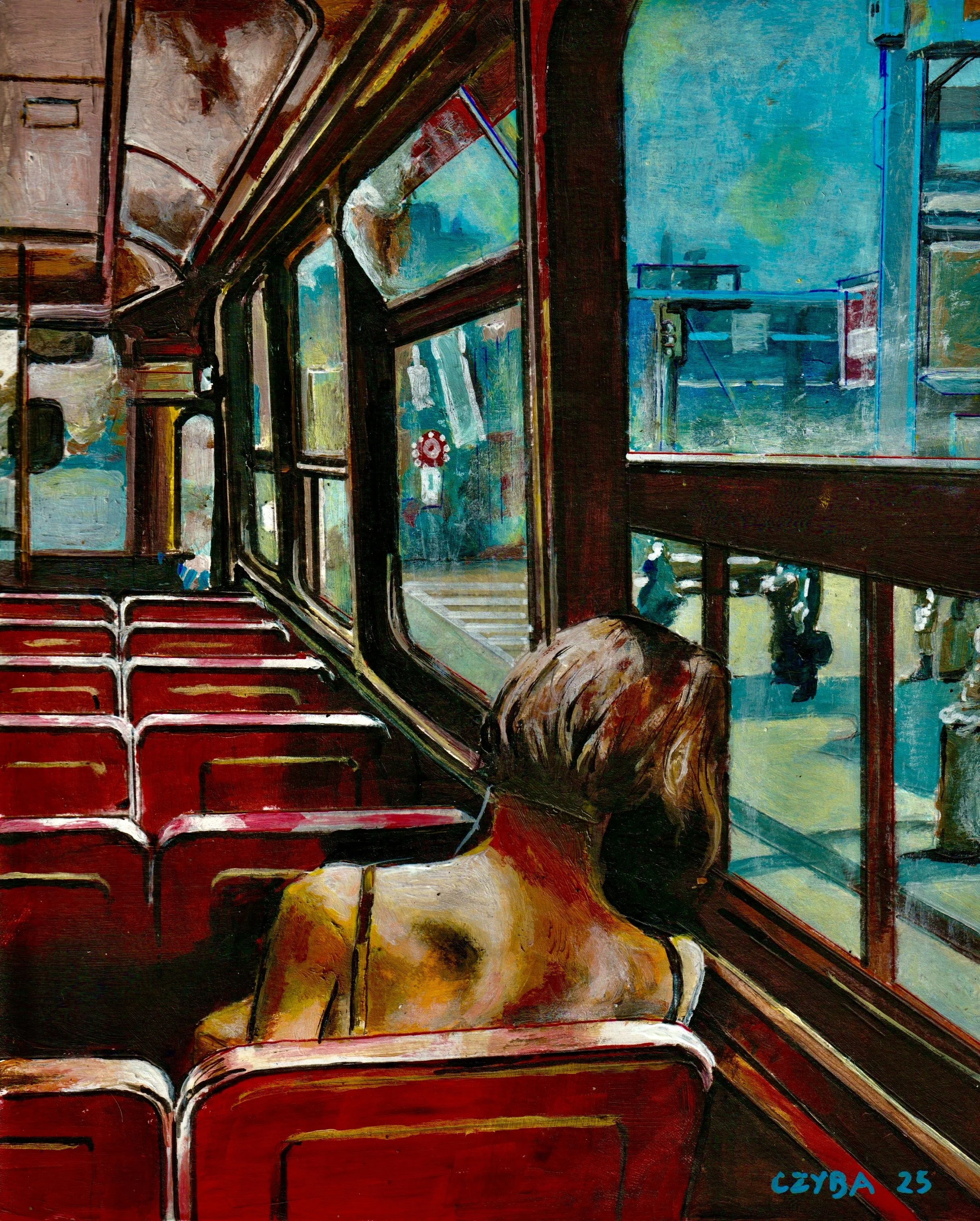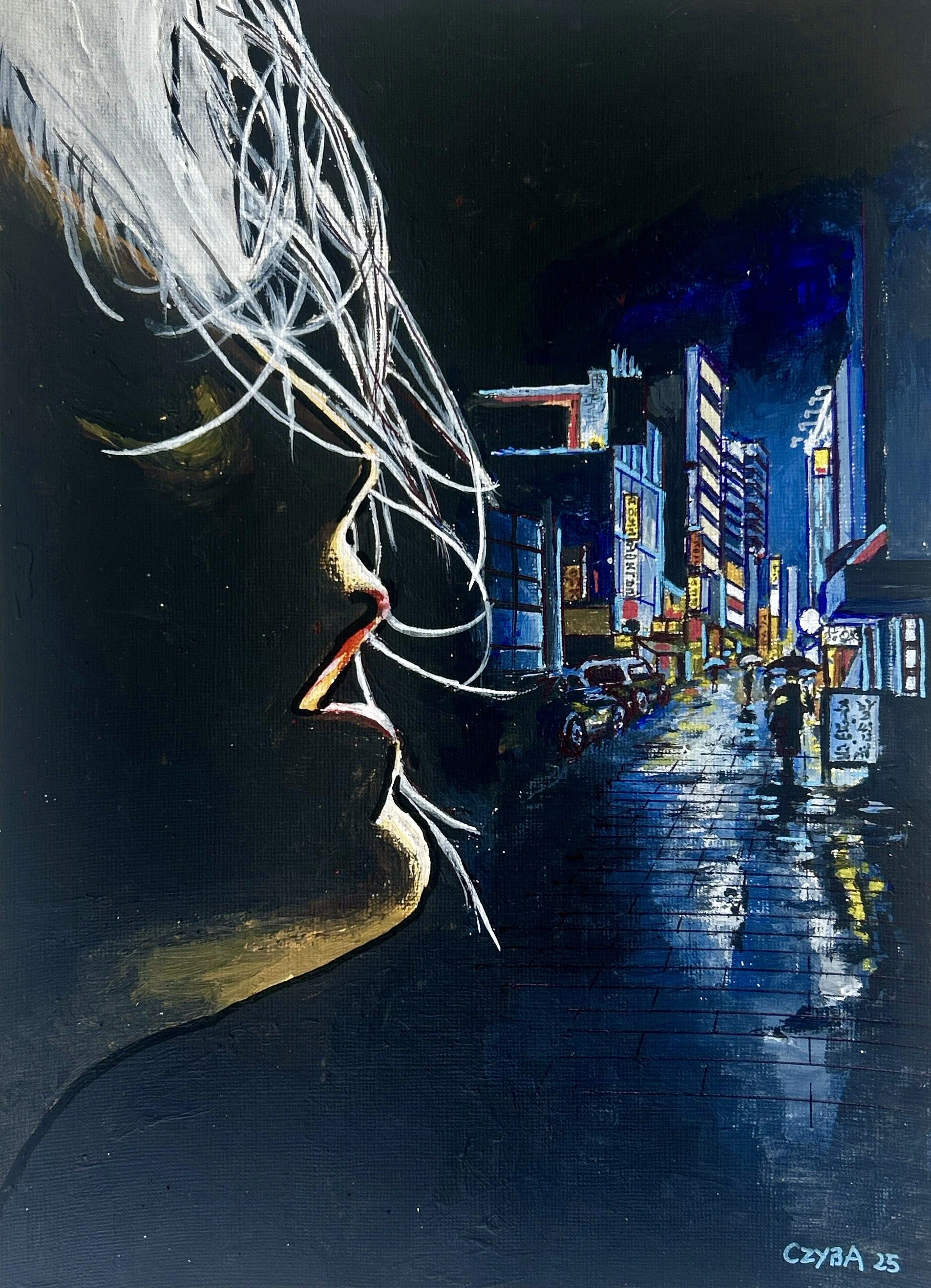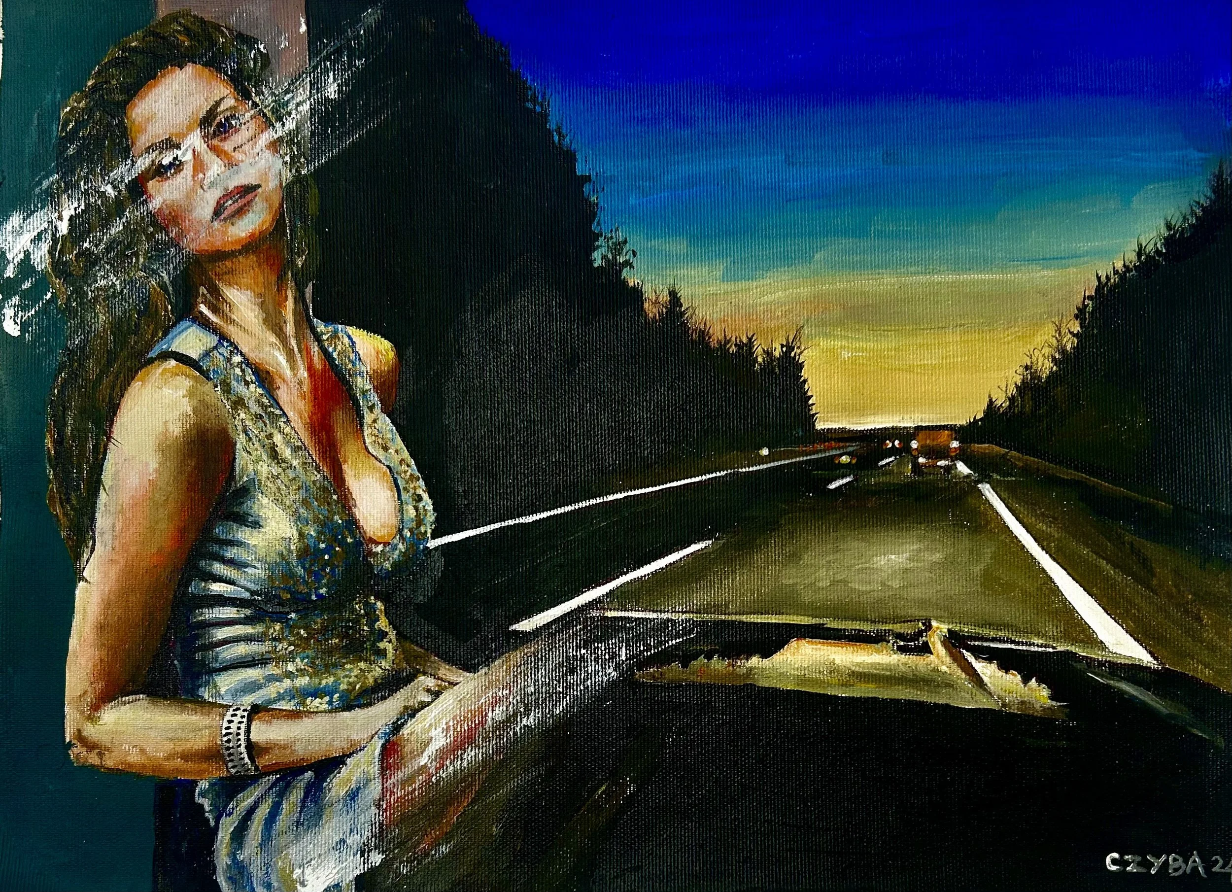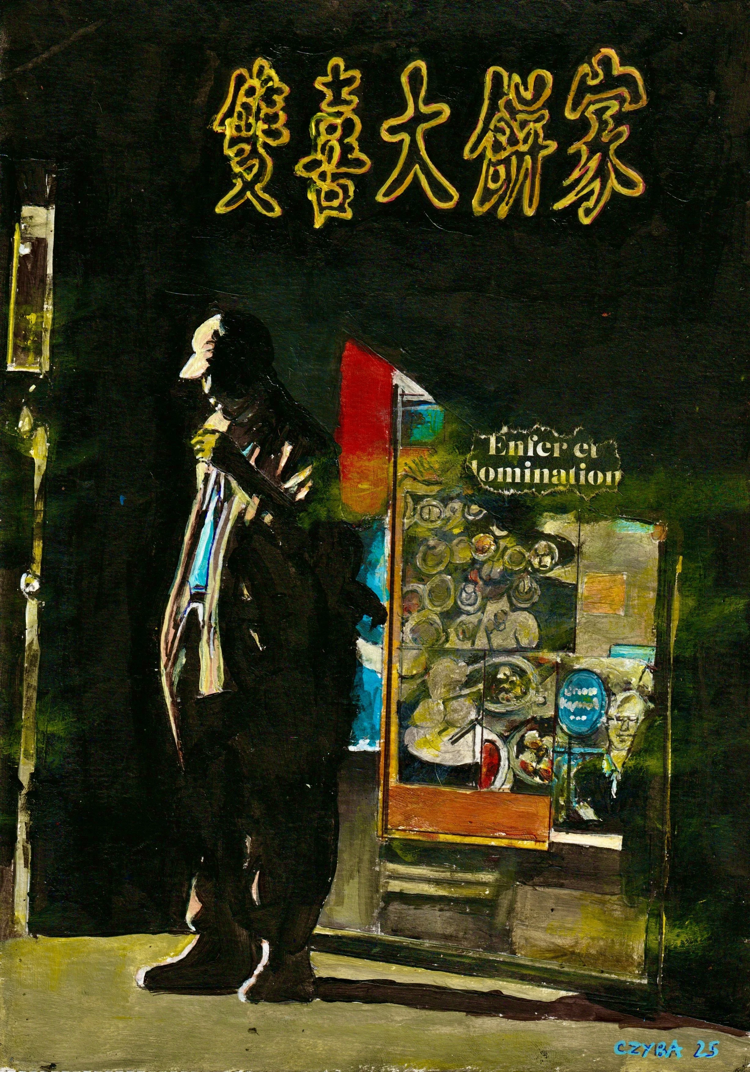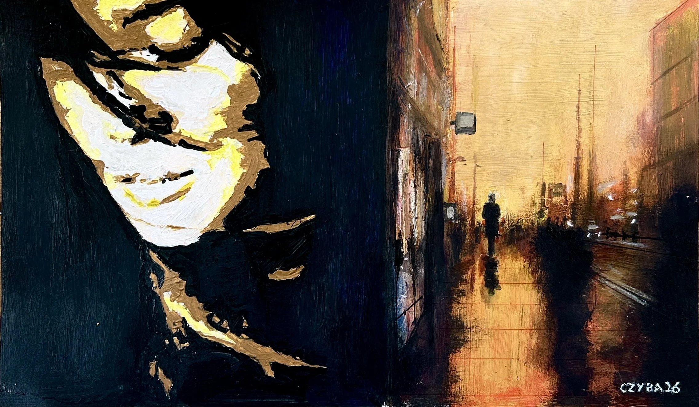 Huile sur papier, miniature 21x29 cm. CZYBA 2024.