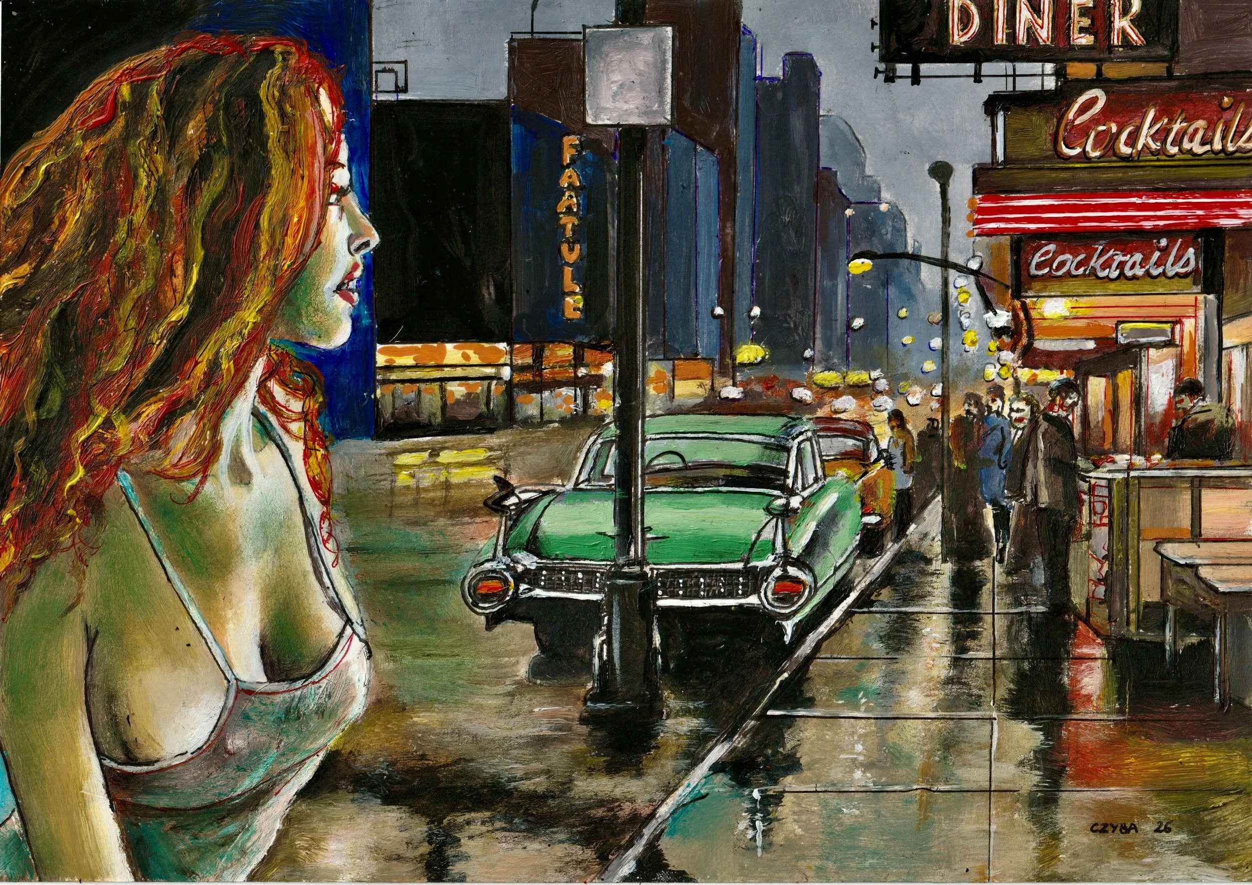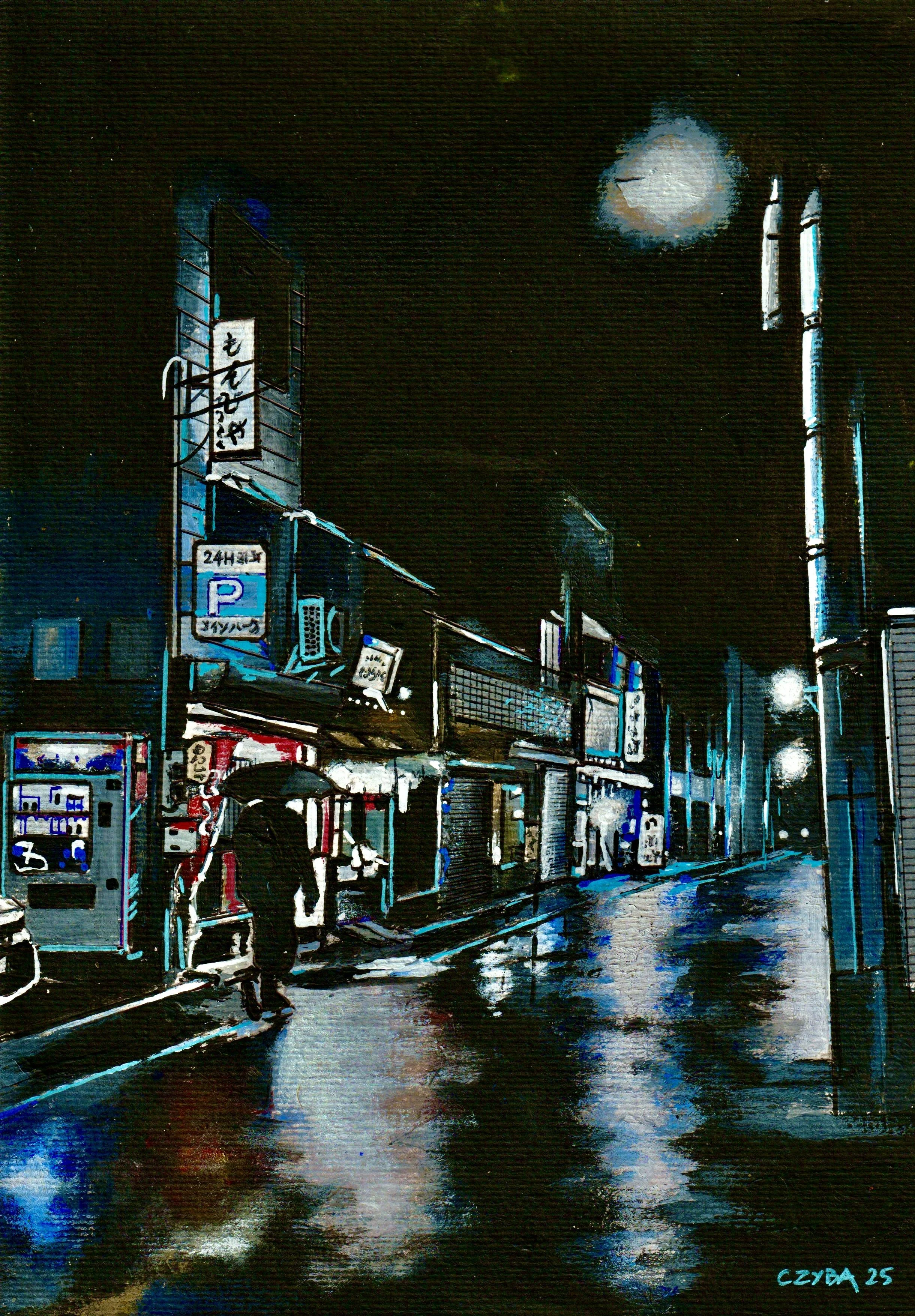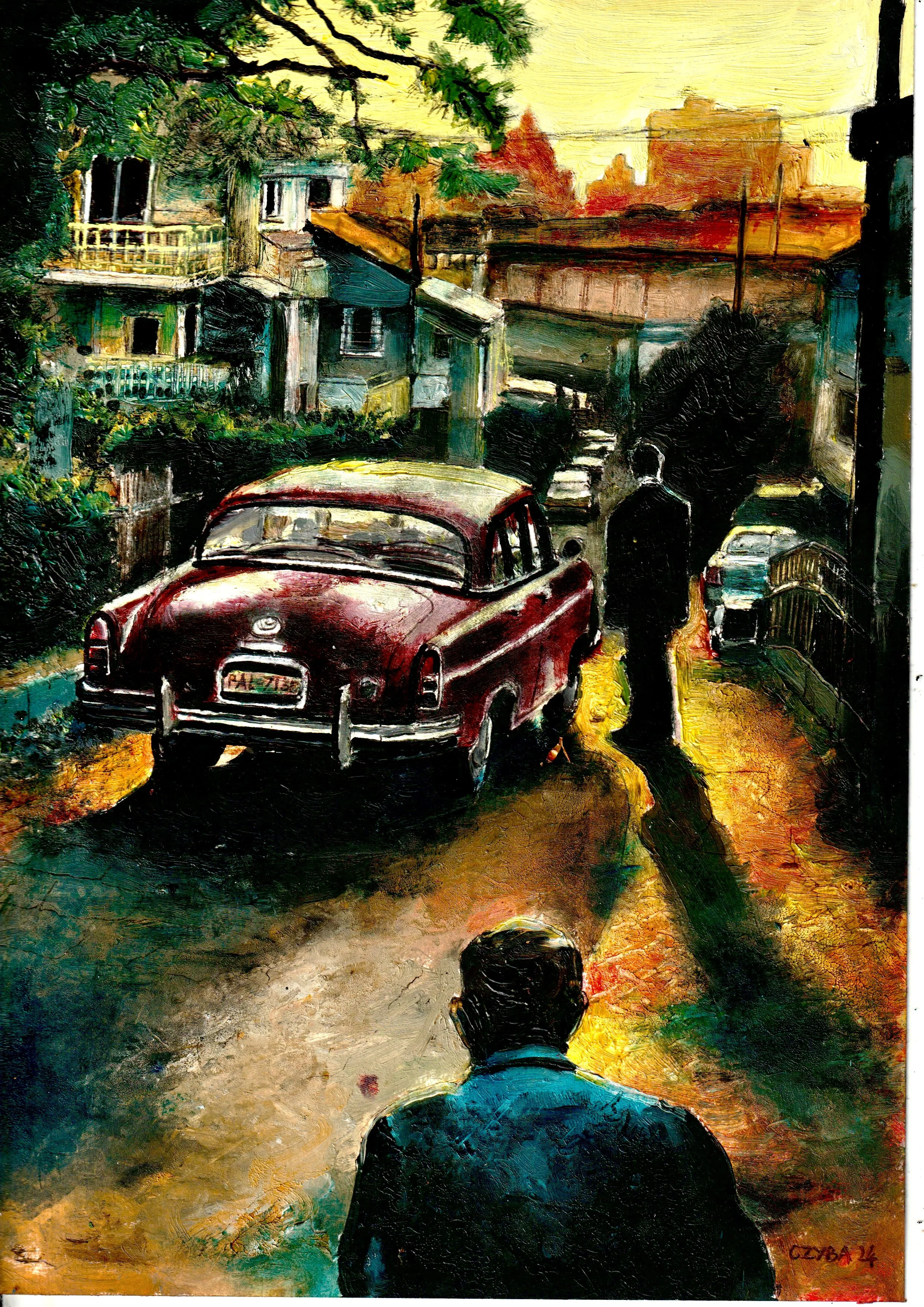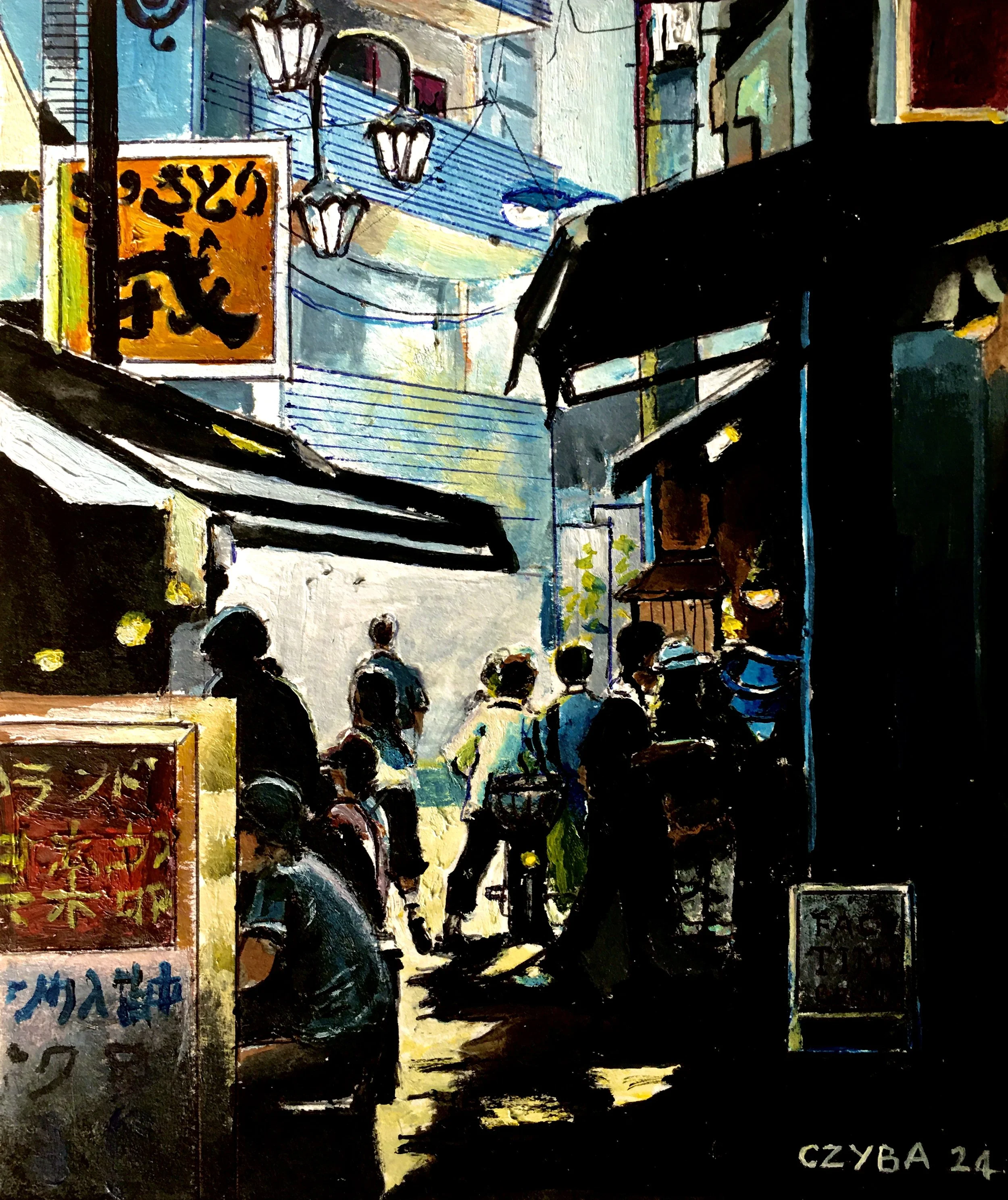 Huile sur papier, miniature 21x29 cm. CZYBA 2024.
