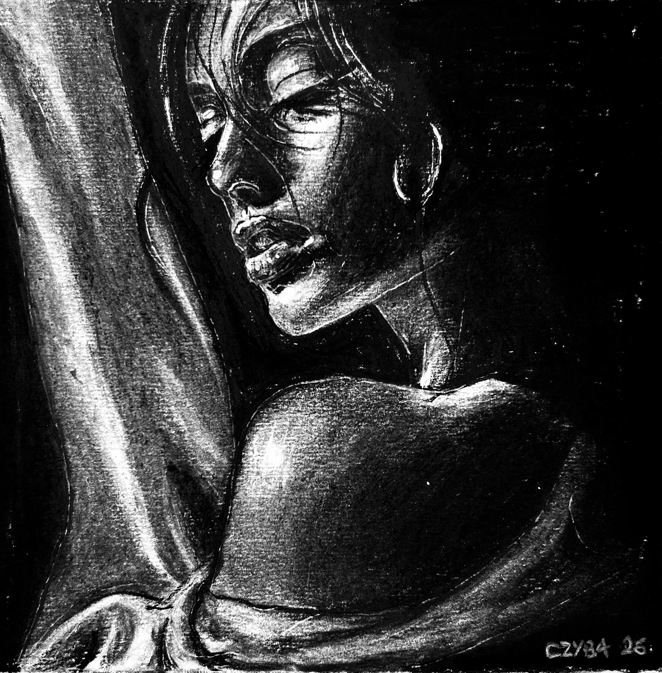 "PABLO" Fusain 18x21 cm. CZYBA 2022.