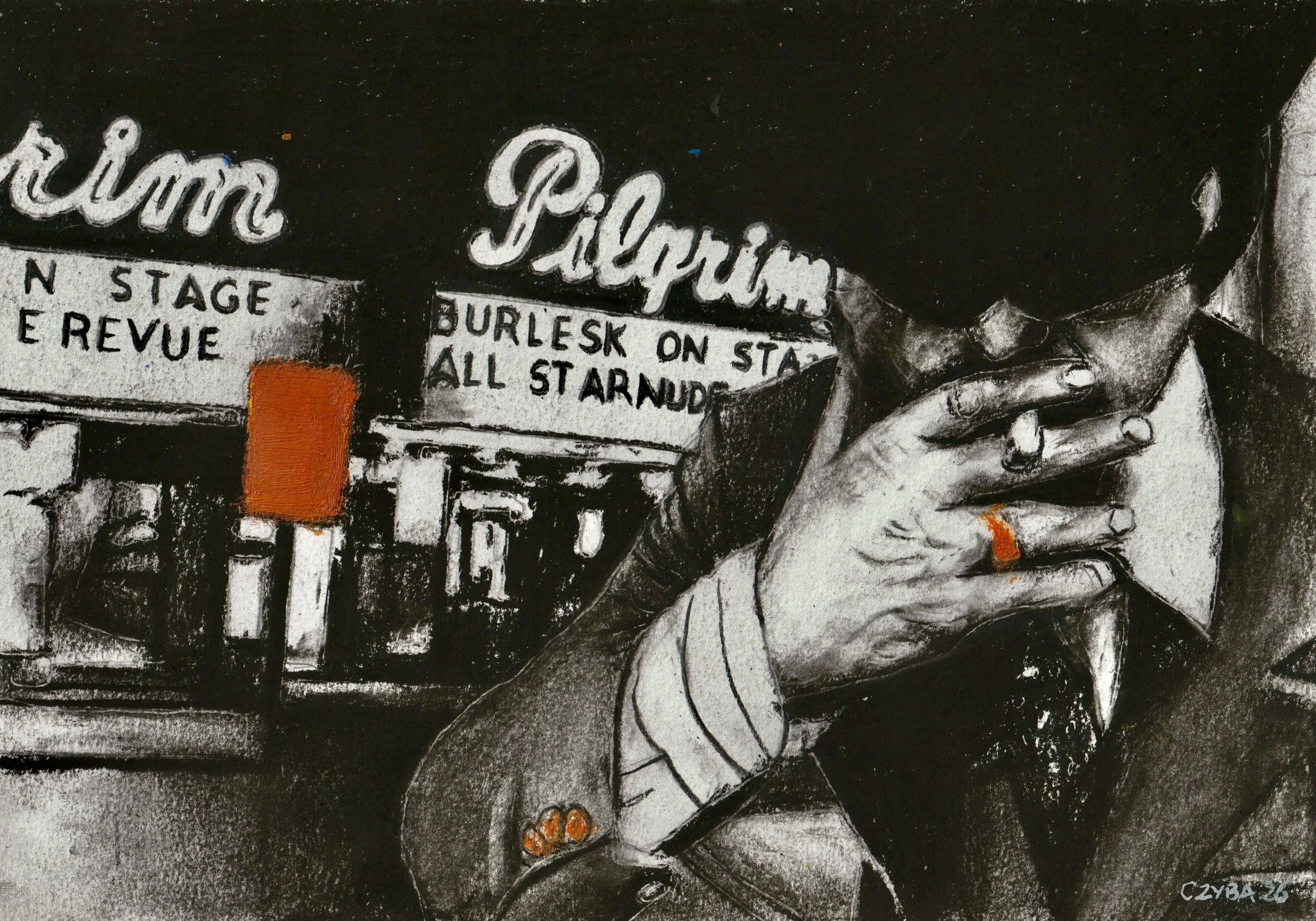 Fusain & acrylique sur papier, 21×29 cm. 2026.